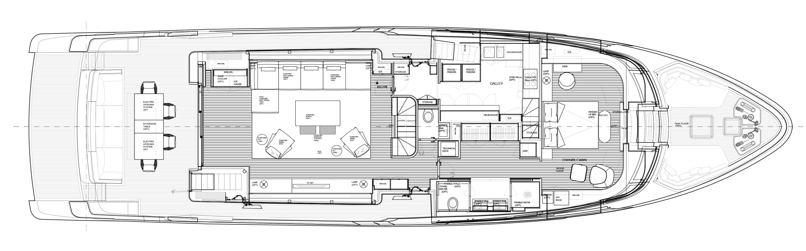 Bu yat, denizcilik geleneği ile stilistik yeniliği ustaca dengeleyerek, incelik ve pratikliğin mükemmel bir sentezi sayesinde denizdeki yaşamın huzurunu artırıyor.
