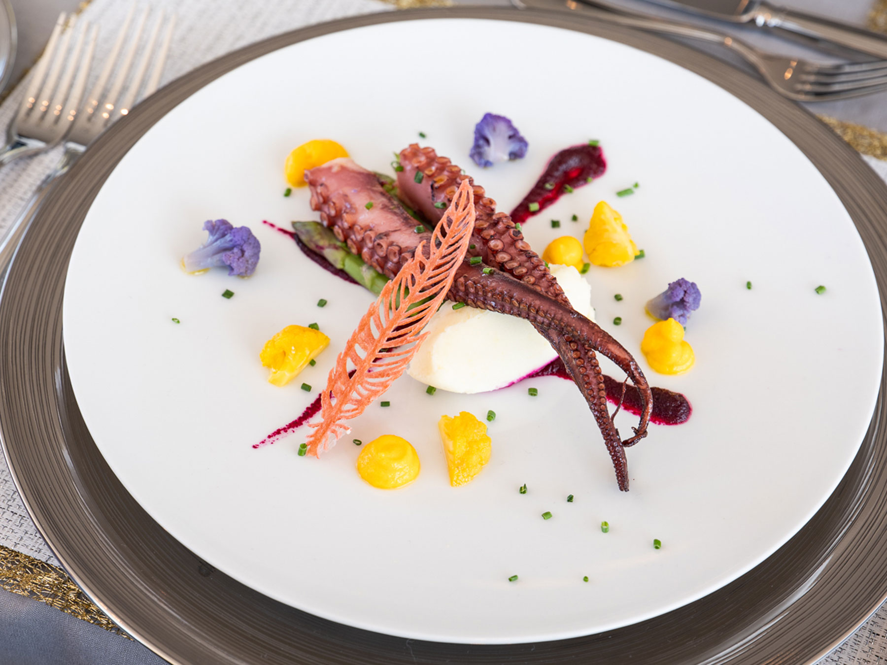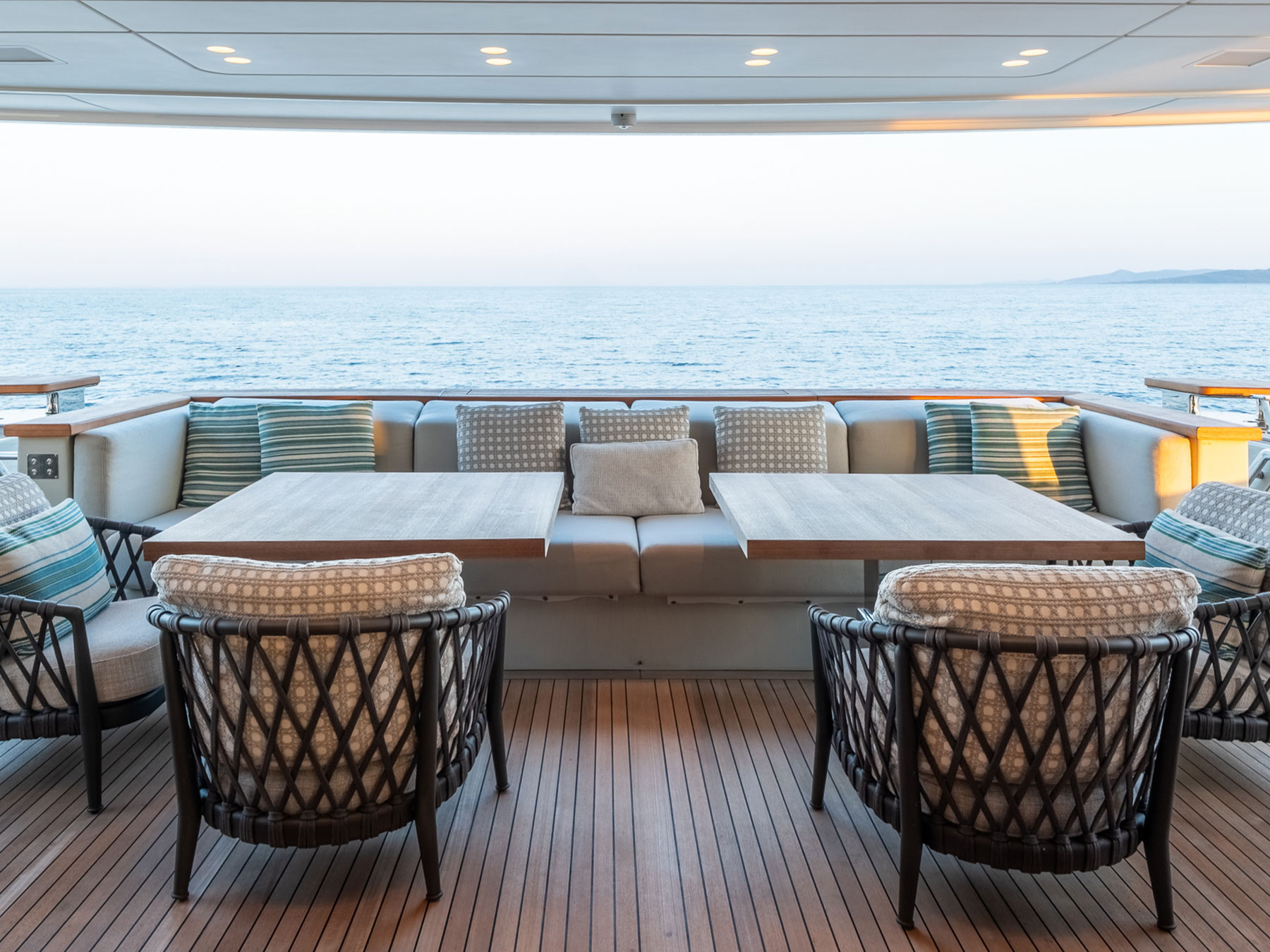 Üst güvertede bulunan sky lounge, zarif yemek deneyimleri için ideal olan panoramik manzaralar sunar. Şık şezlonglarla donatılmış açık alanlar, konukların mutlak bir huzur içinde çevrelerinin sükunetini ve güzelliğini tam anlamıyla kucaklamalarını sağlar.